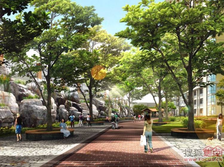 园林景观:园林以人与自然的和谐为题,打造绿地、自然、阳光的人居环境,重视道路景观与每个组团区域绿地的关系;并结合绿化树种的多样性,利用高差层次的植被把步道空间与驻足空间相互串联,将休闲空间与观赏空间相互穿插,使园林、小品、建筑有机的融合在一起,形成连续的主题景观概念。