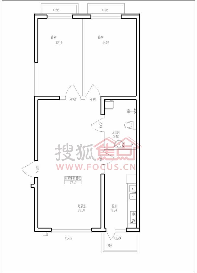 2室1厅1卫-南郡凤凰湾两室一厅一卫69.21㎡