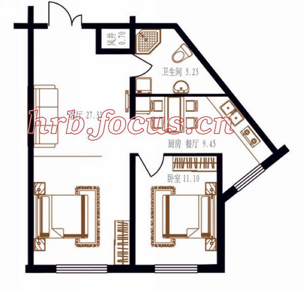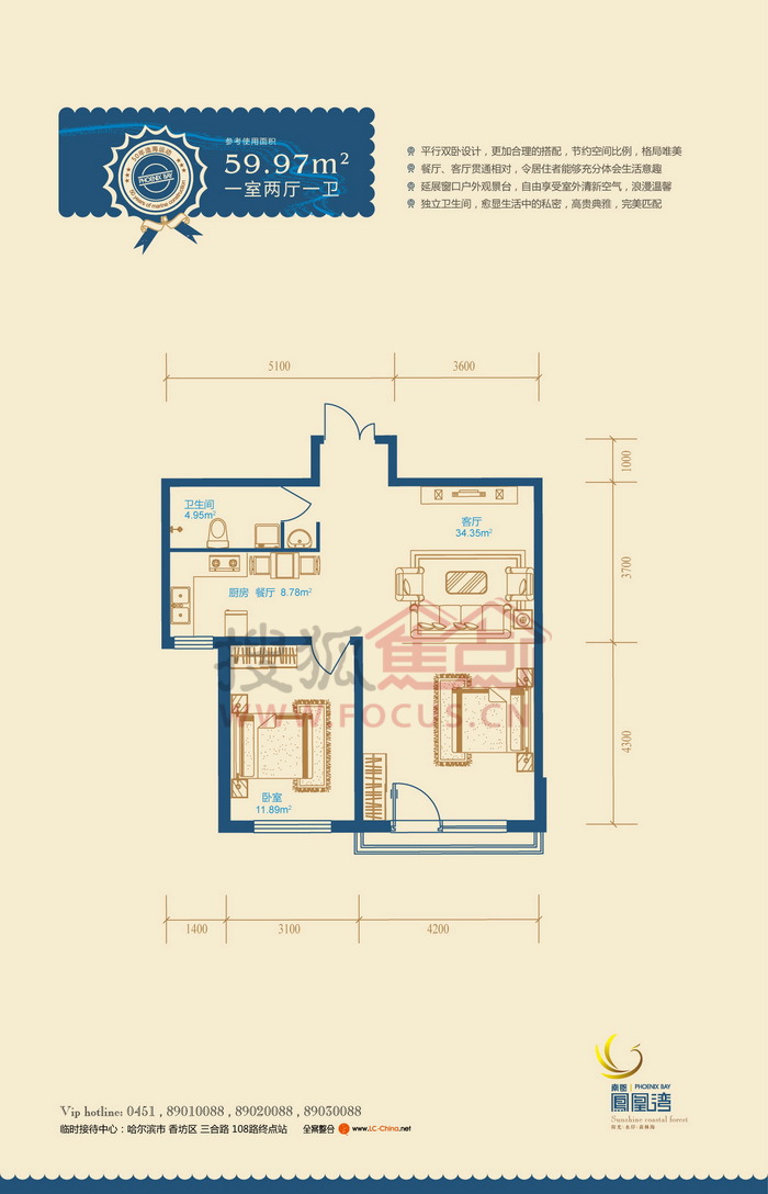 1室2厅1卫-南郡凤凰湾一室两厅一卫59.97㎡