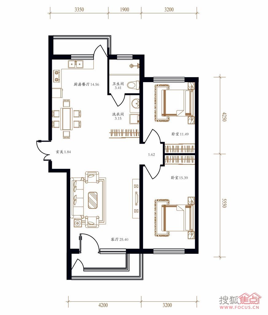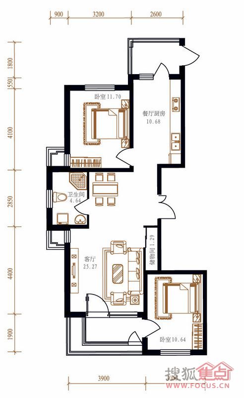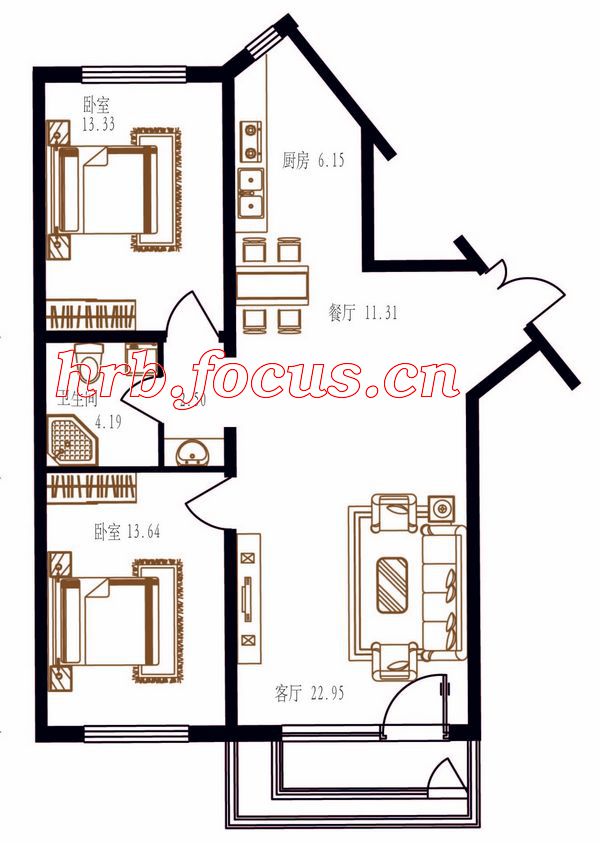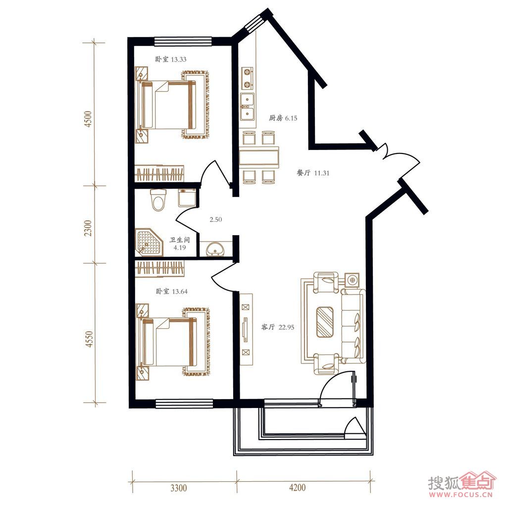 2室2厅1卫-南郡凤凰湾两室两厅一卫64.22㎡