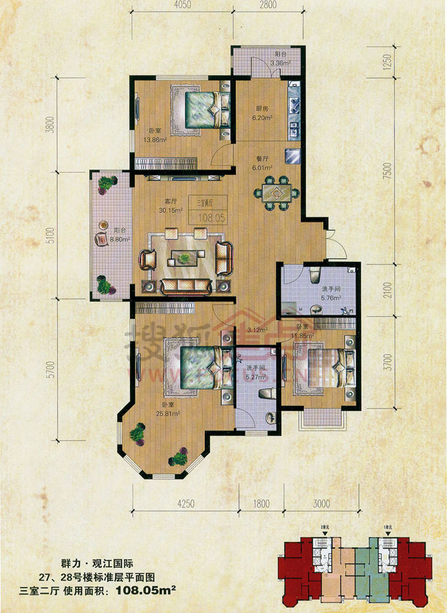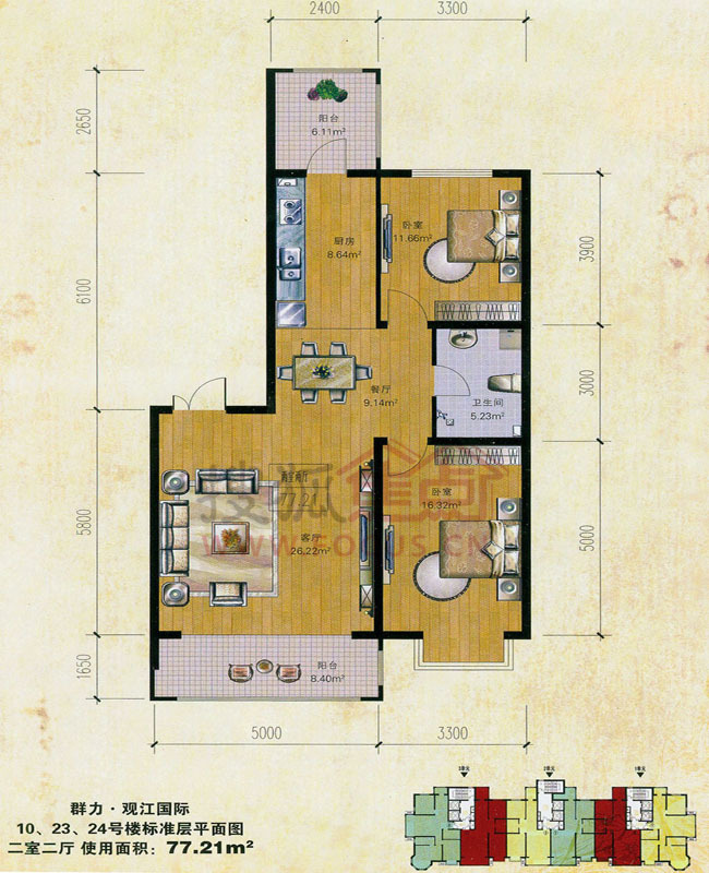 群力观江国际户型规划以中大户型为主,使用面积区间为70-123平米,二室一厅、二室二厅、三室一厅、三室二厅等多种户型供选,黑龙江宏大物业管理有限公司