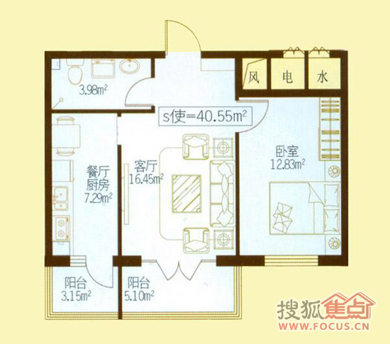 1室1厅1卫-一室一厅一卫一厨40.55㎡