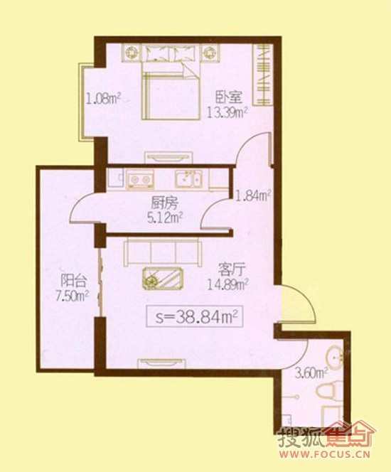 1室1厅1卫-一室一厅一卫一厨38.84㎡