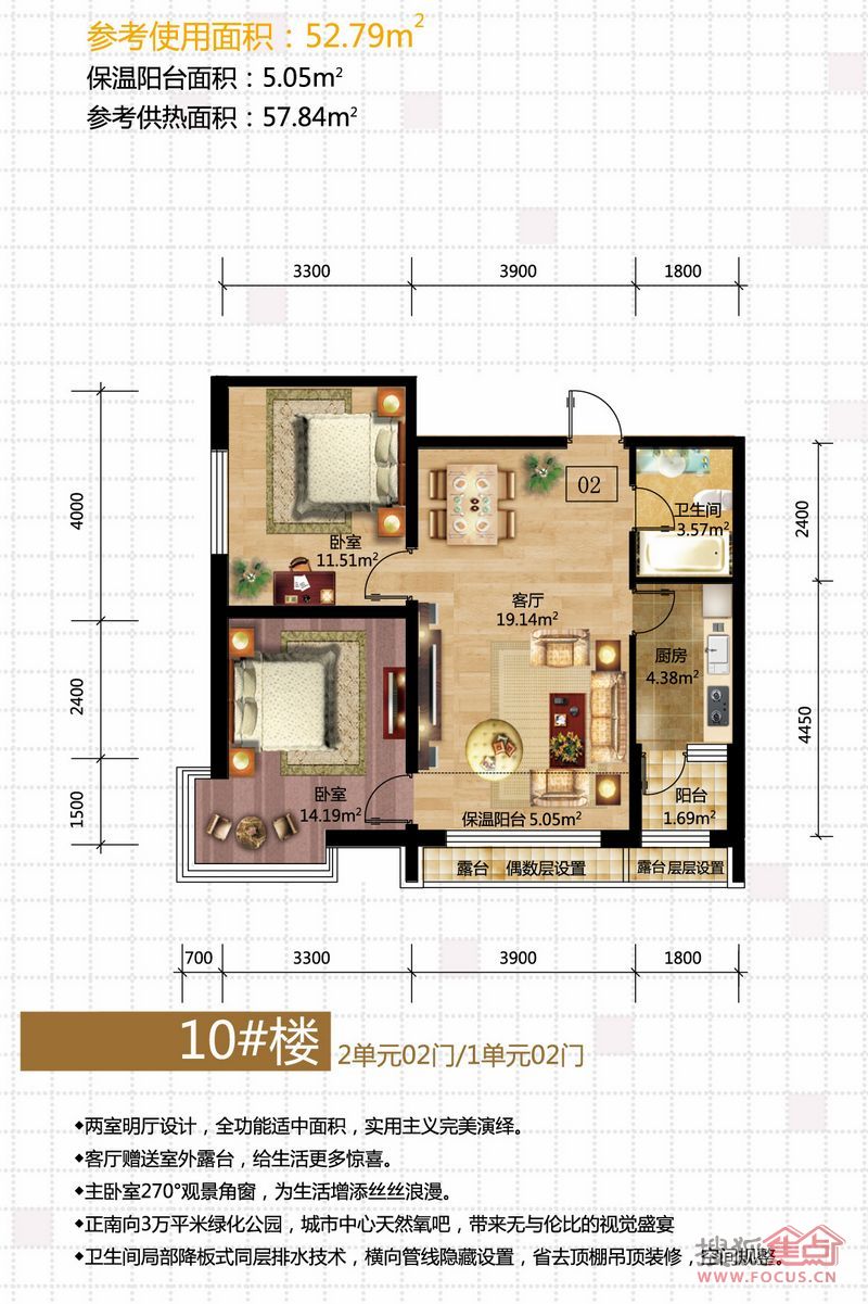 2室1厅1卫-富达·蓝山10#楼两室一厅一卫52.79㎡