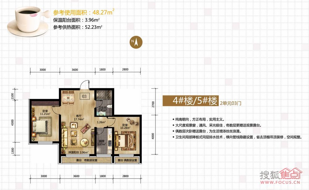 2室1厅1卫-富达蓝山5#楼两室一厅一卫48.27㎡