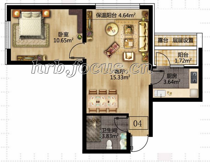 1室1厅1卫-富达·蓝山一室一厅一卫33.45㎡