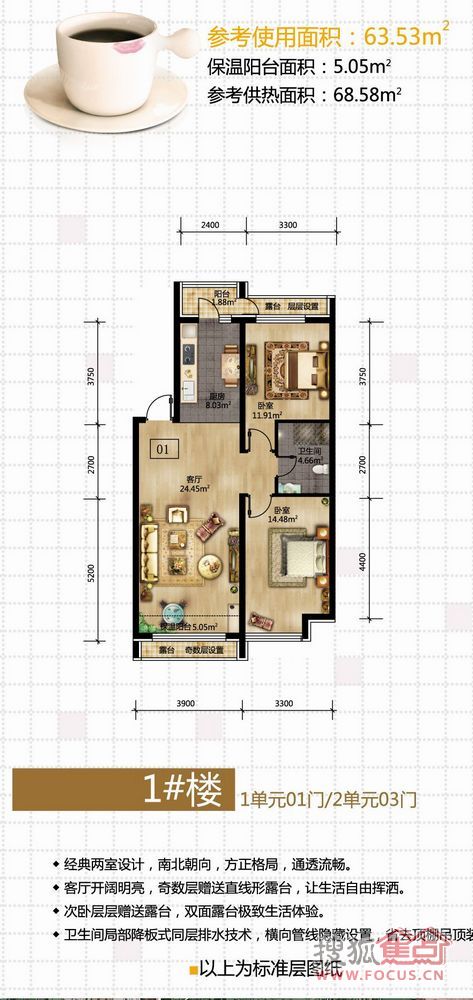 2室1厅1卫-富达蓝山1#楼两室一厅一卫63.53㎡