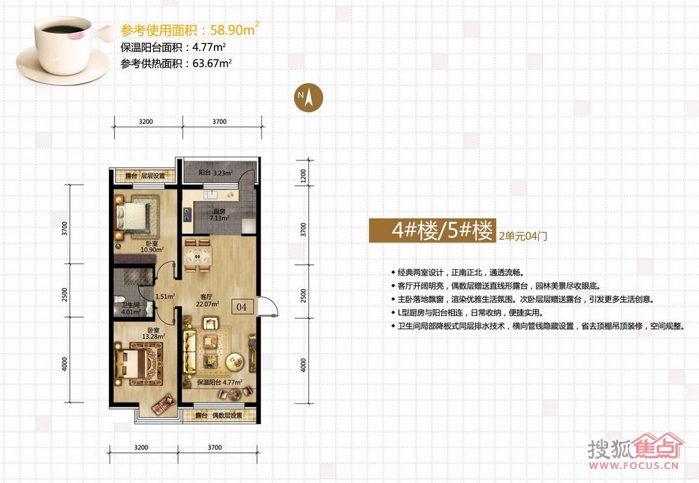 2室1厅1卫-富达蓝山5#楼两室一厅一卫58.90㎡