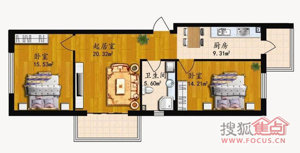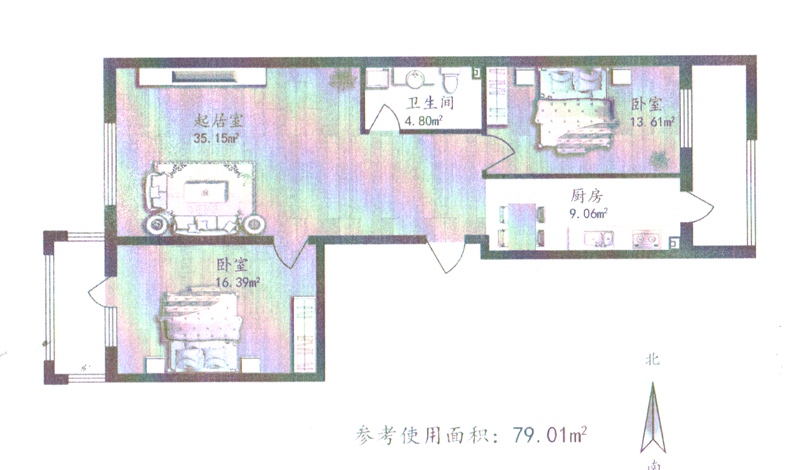 2室1厅1卫-79.01平米两居