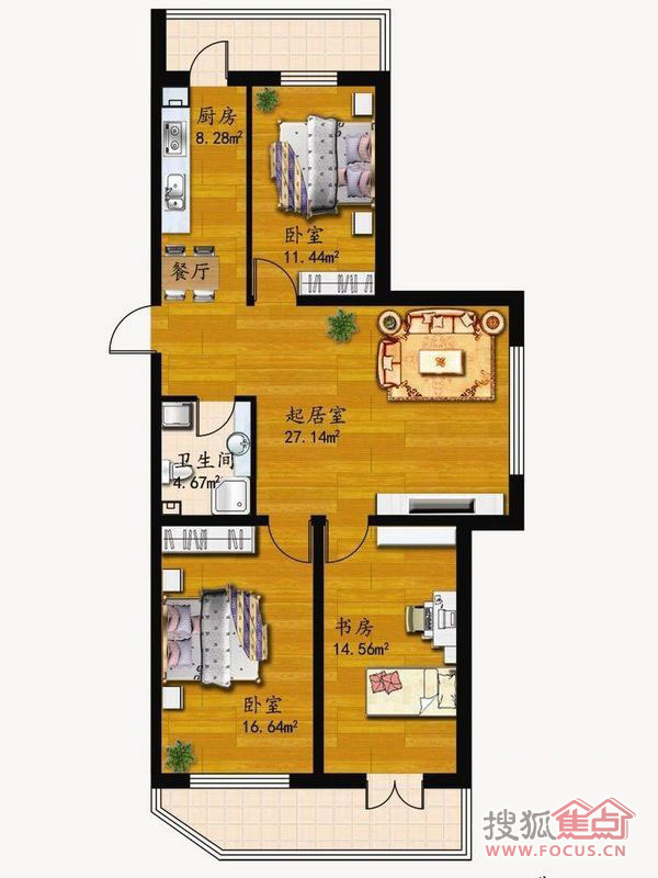 3室1厅1卫-82.73平米三居
