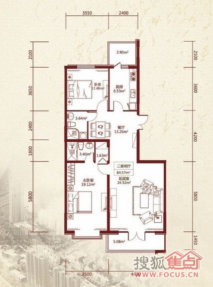 2室2厅1卫-A栋标准层