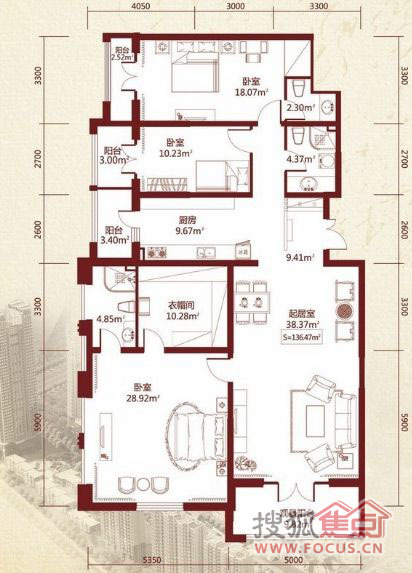 3室2厅3卫-A栋136平米三居