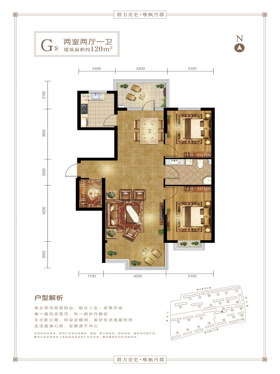 2室2厅1卫-G8建面120㎡两室两厅一卫高层