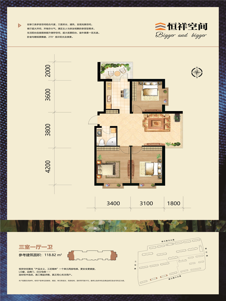 3室1厅1卫-建面118.82㎡三室一厅一卫高层