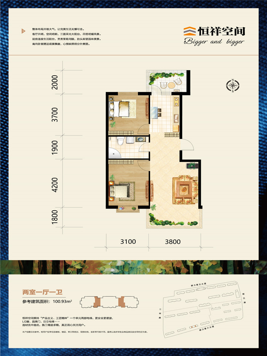 2室1厅1卫-高层建面100.93平米两室一厅一卫