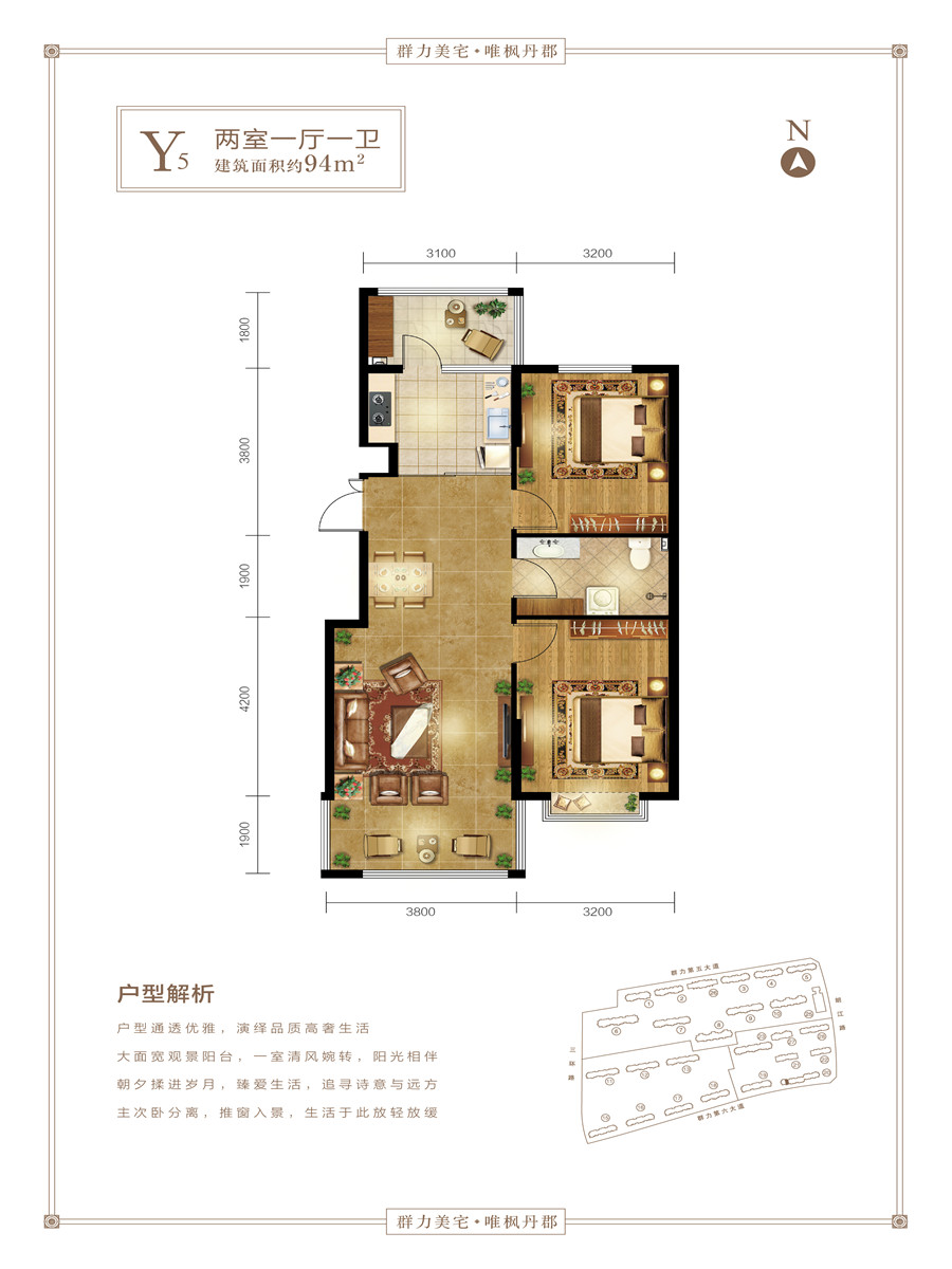 2室1厅1卫-Y5建面94㎡两室一厅一卫洋房