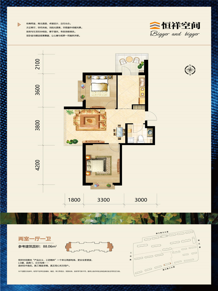 2室1厅1卫-高层建面88.06平米两室一厅一卫
