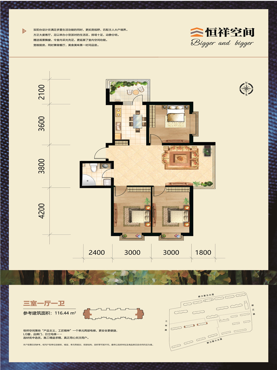 3室1厅1卫-建面116.44㎡三室一厅一卫高层