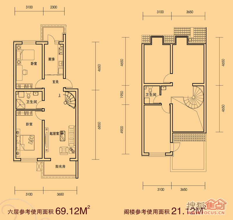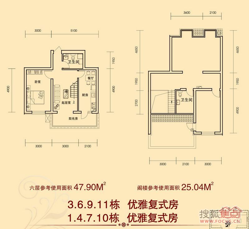 3室2厅2卫-金帝花城69.12㎡带21.12㎡阁楼