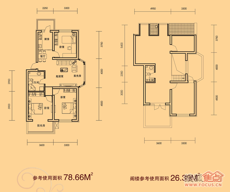 3室2厅2卫-金帝花城73.53㎡带24.61㎡阁楼