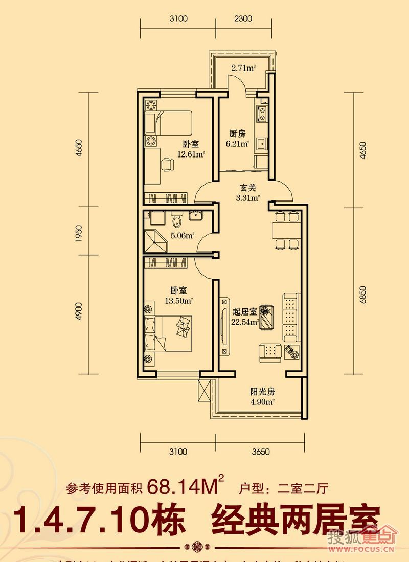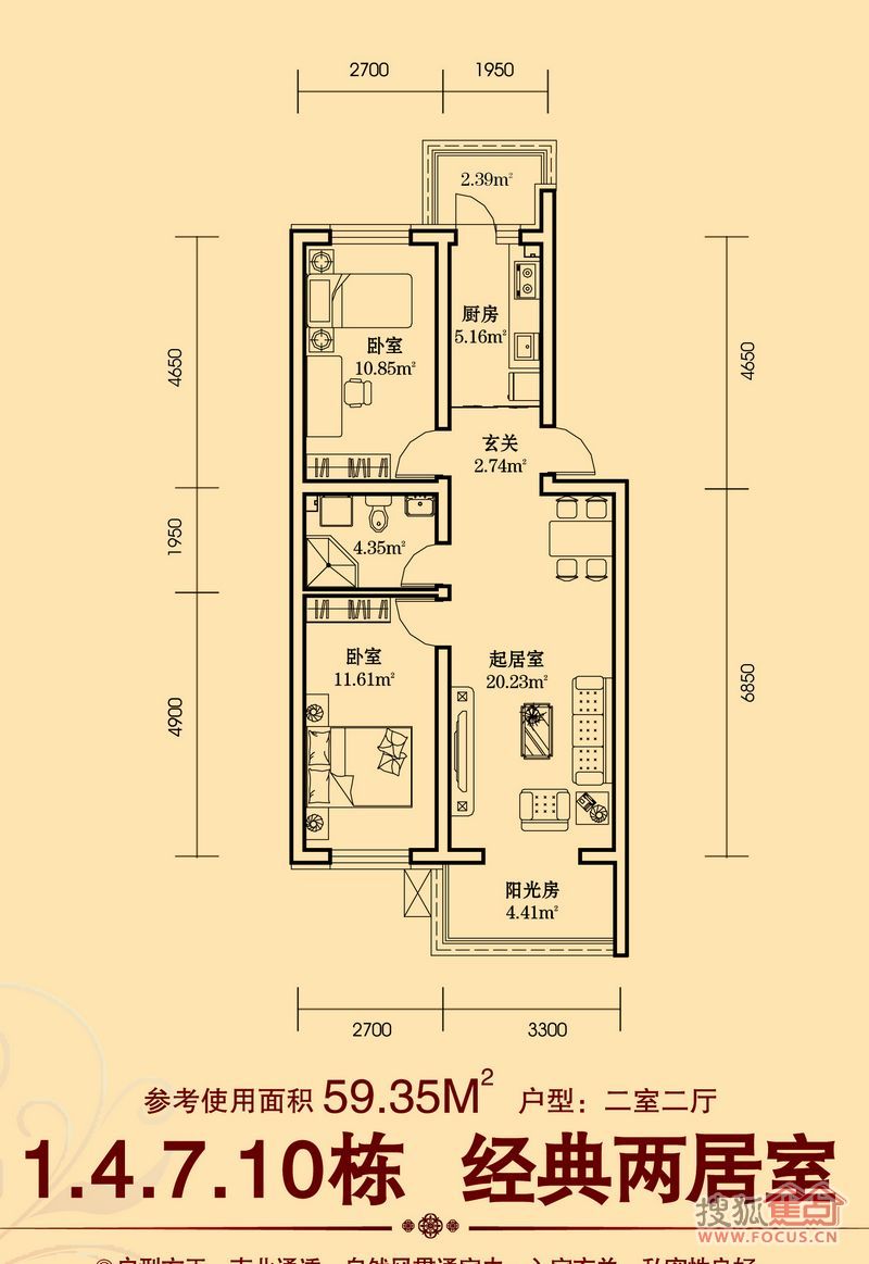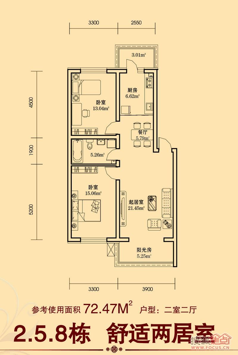 2室2厅1卫-金帝花城两室两厅一卫69.12㎡