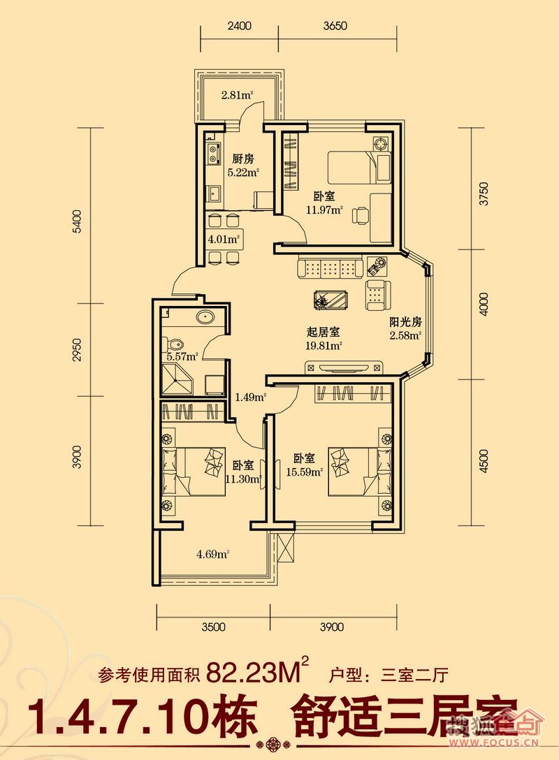 3室2厅1卫-金帝花城82.23㎡三室两厅一卫
