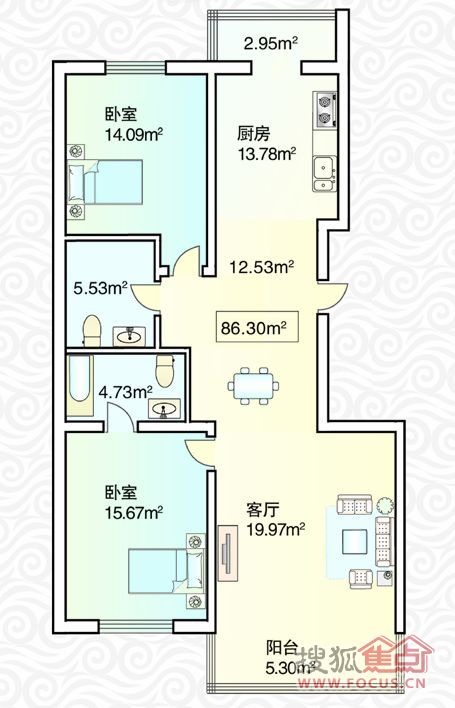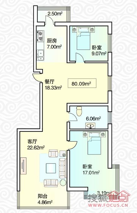 2室2厅1卫-5号楼/10号楼80.09平米两居