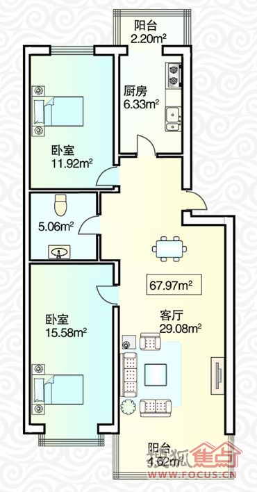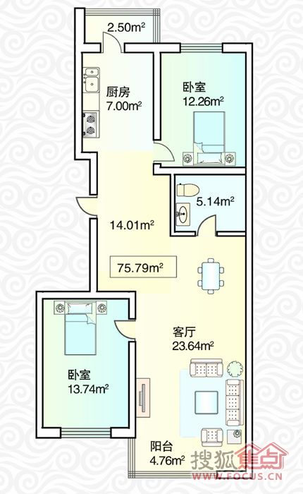 2室1厅1卫-5号楼/10号楼75.79平米两居