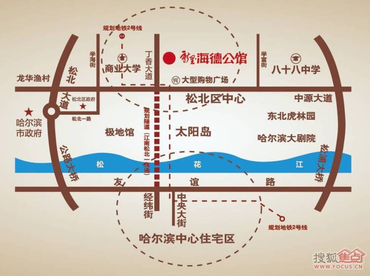 本项目周边有127、119和29路公交车通往江南各个主城区,还有122、123路松北环线公交车途径此地,本项目7分钟到达2号线地铁口,地铁开通后半小时内往返中央大街,极大地便利了居民的出行。