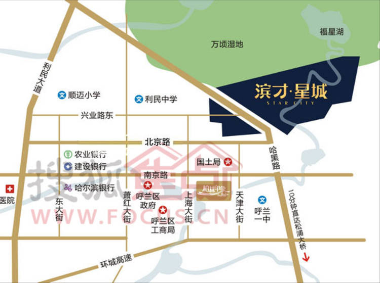 滨才星城周边成熟配套:远东大市场、利民中学、呼兰一中、顺迈医院等。