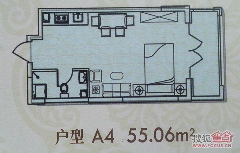 1室1厅1卫-金丰优豪斯A4建筑面积55.06㎡户型图