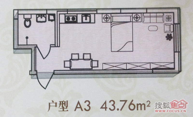 1室1卫-金丰优豪斯A3建筑面积43.76㎡户型图