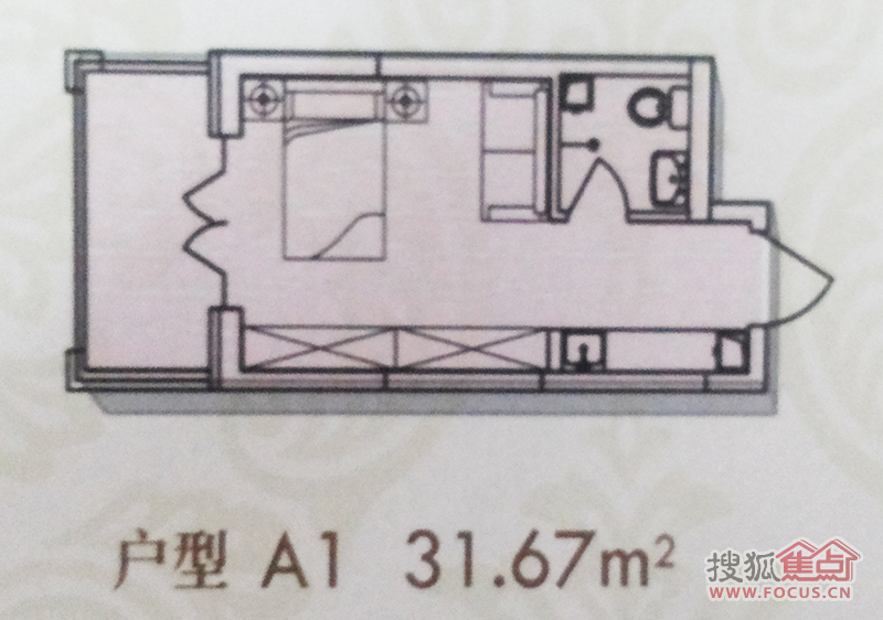 1室1卫-金丰优豪斯A1建筑面积31.67㎡户型图