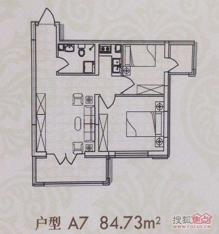 2室1厅1卫-金丰优豪斯A7建筑面积84.73㎡户型图