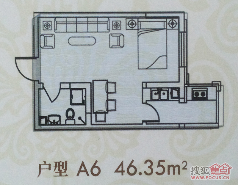 1室1厅1卫-金丰优豪斯A6建筑面积46.35㎡户型图