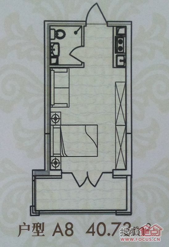 1室1卫-金丰优豪斯A8建筑面积40.73㎡户型图
