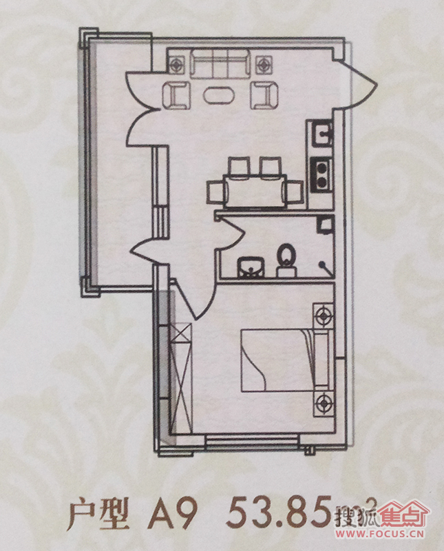 1室1厅1卫-金丰优豪斯A9建筑面积53.85㎡户型图