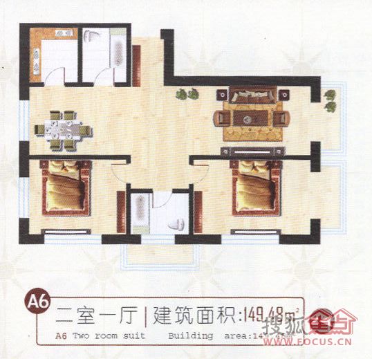 2室1厅1卫-盛世财富公馆149.48㎡两室一厅一卫