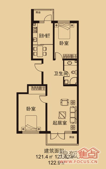 建面121.4m²