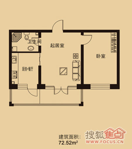 1室1厅1卫-金河铭苑多层一室一厅一卫72.52㎡