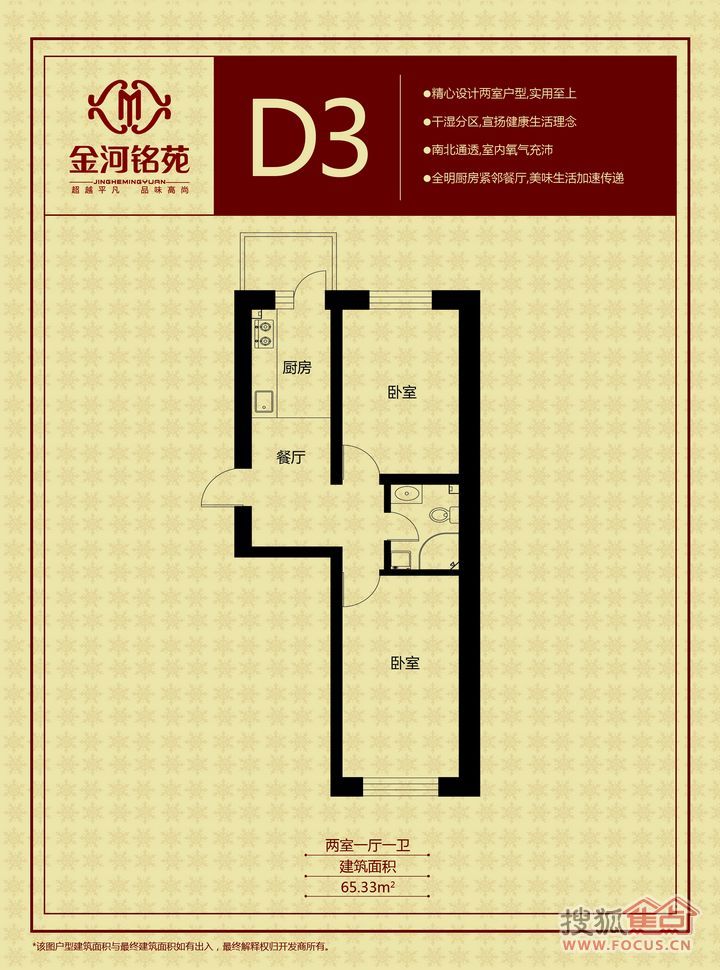 2室1厅1卫-金河铭苑两室一厅一卫65.33㎡