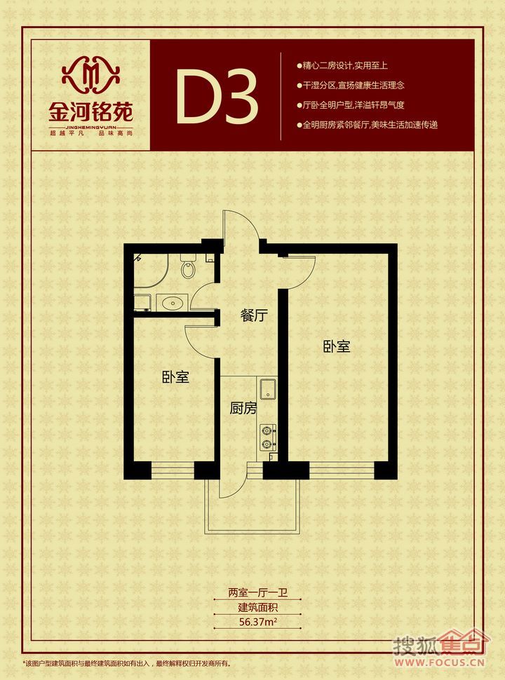 2室1厅1卫-金河铭苑两室一厅一卫56.37㎡