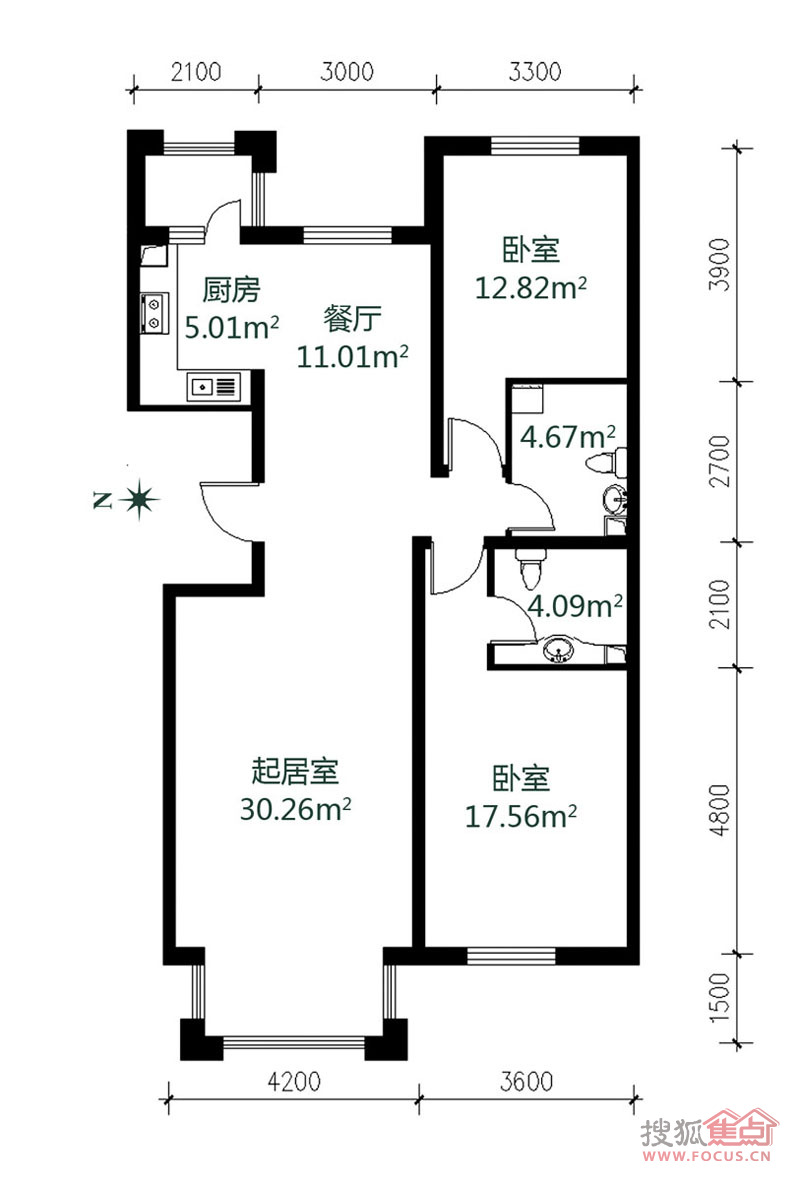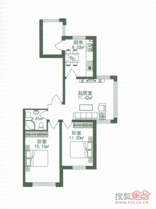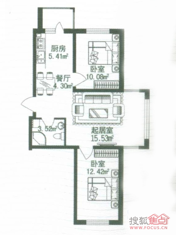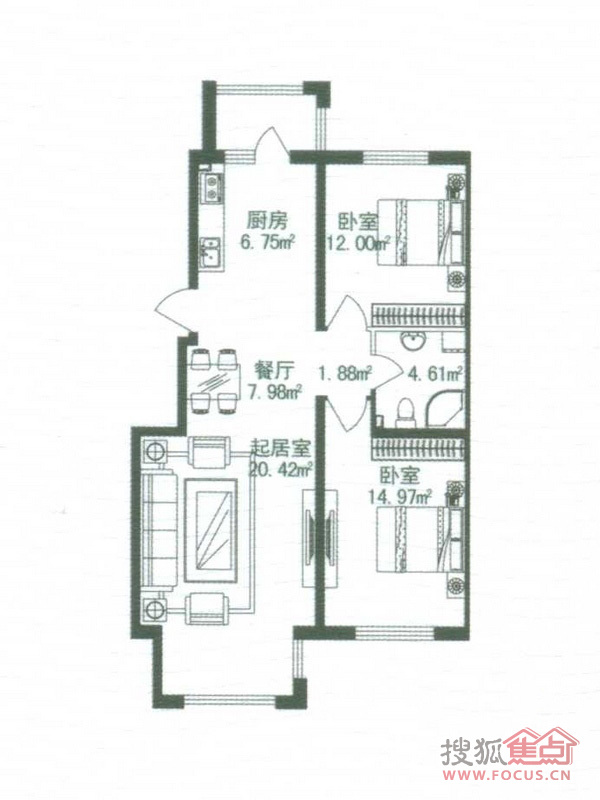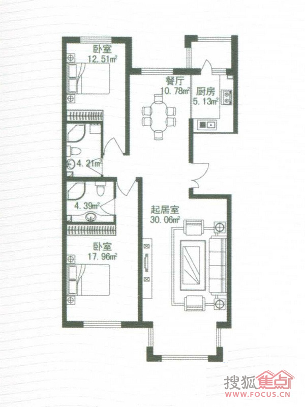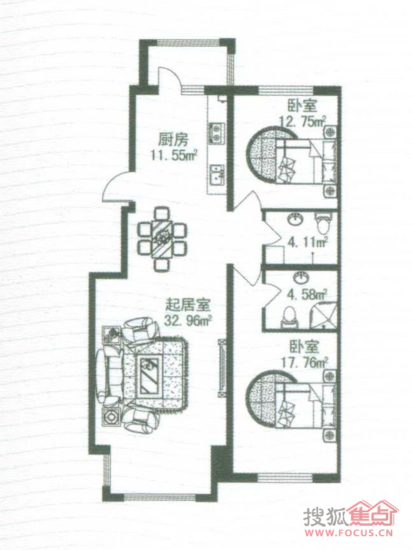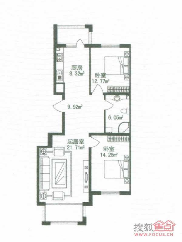 2室2厅1卫-高层71.05平方米(两室两厅一卫)