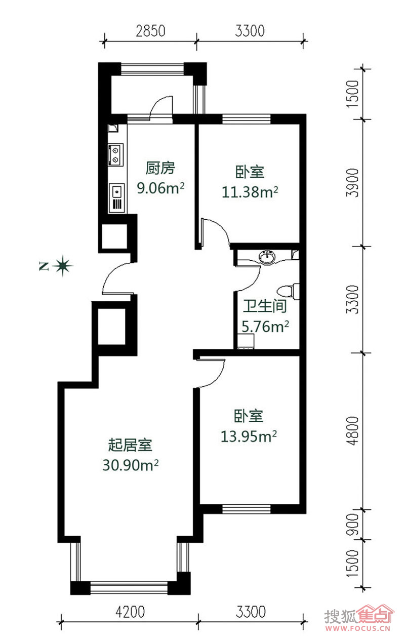 2室2厅2卫-高层85.42平方米(两室两厅两卫)