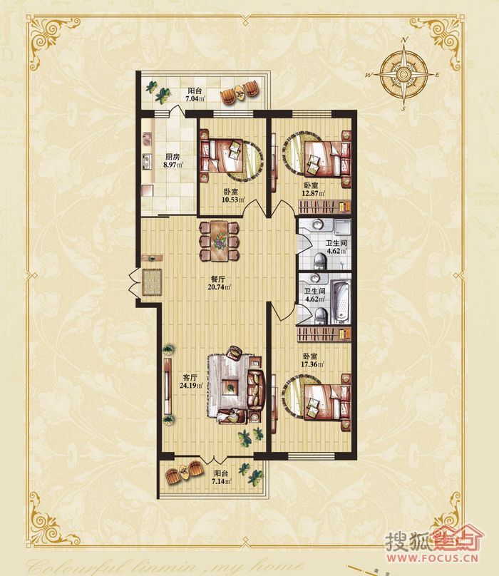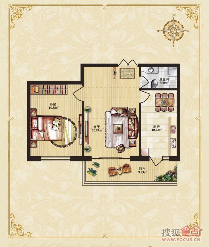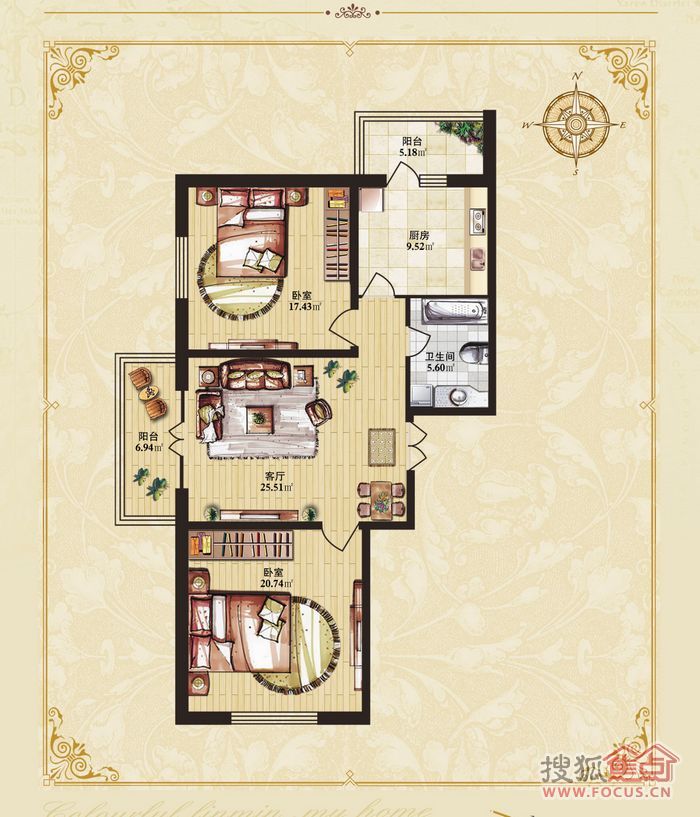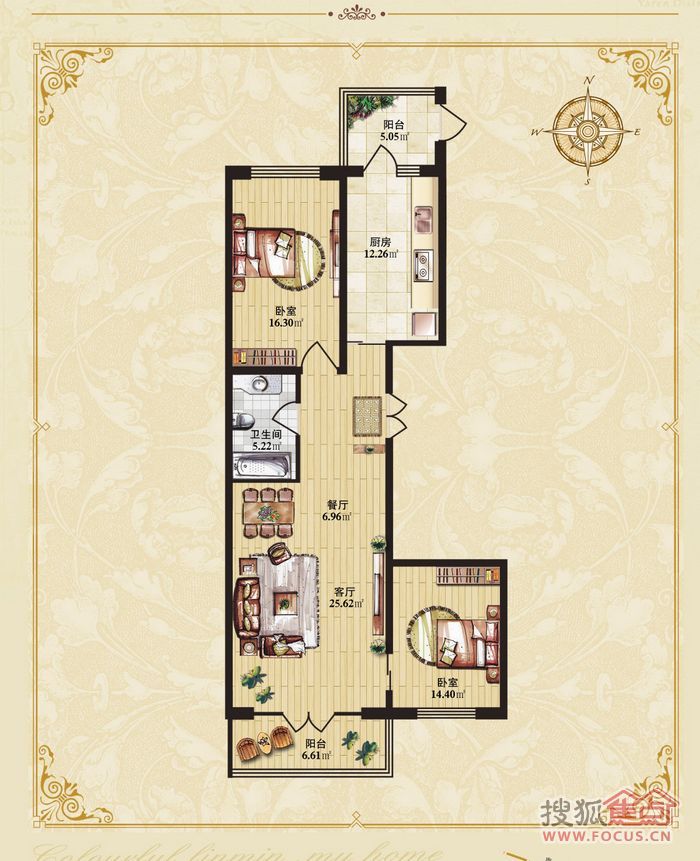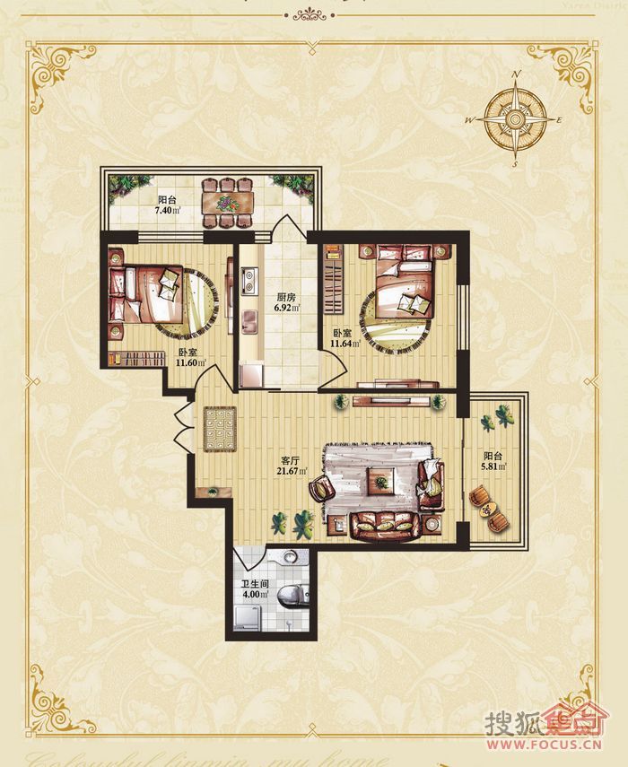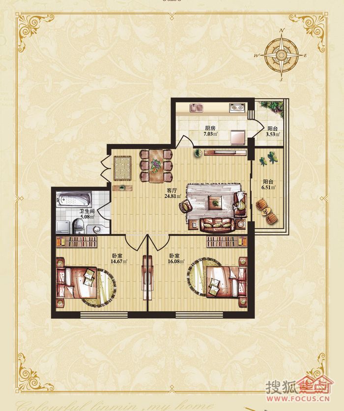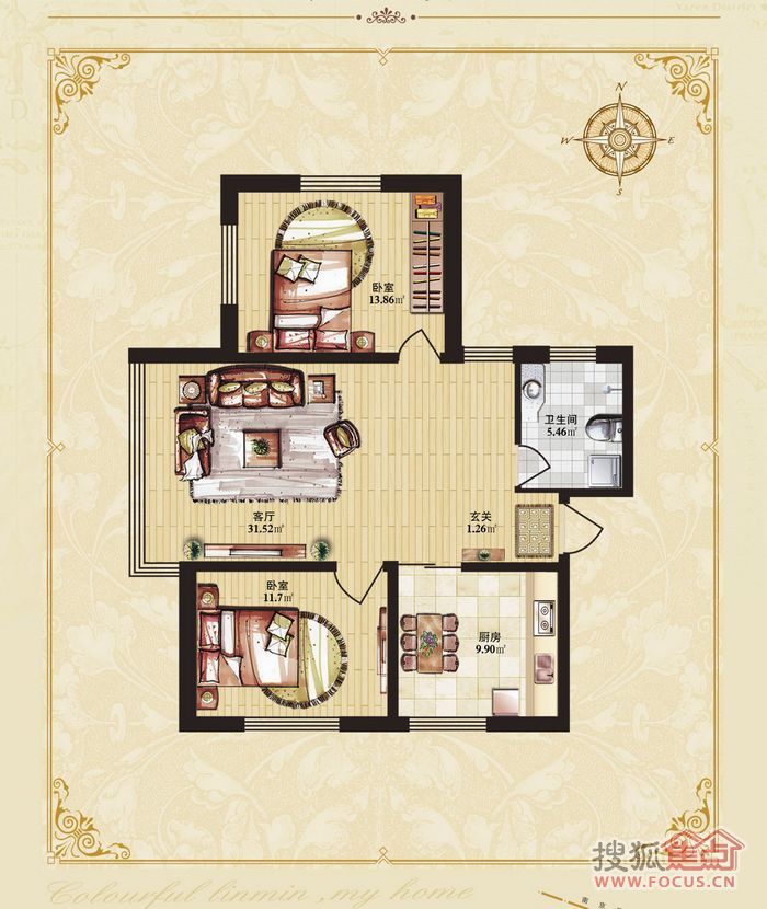 2室1厅1卫-96.9㎡平米两室一厅一卫