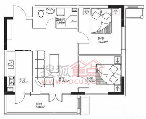 2室1厅1卫-63.41平米两居