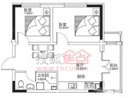 2室1厅1卫-87.83平米两居