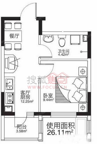 1室1厅1卫-26.11平米一居