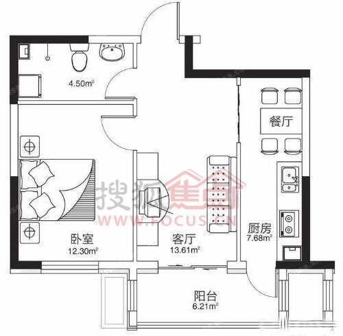 1室1厅1卫-44.30平米一居