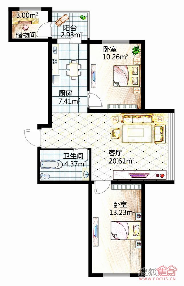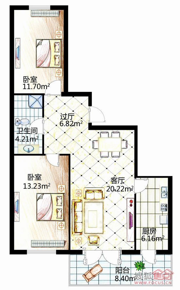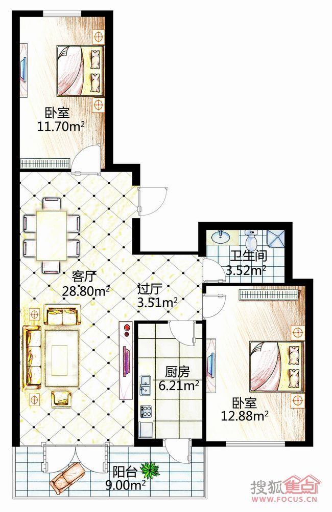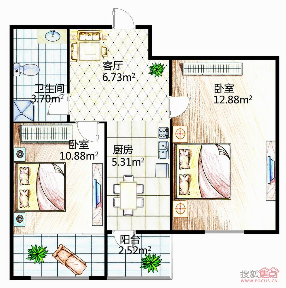 2室1厅1卫-6号楼/11号楼/12号楼66.62平米两居